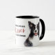 "Beijos de limão consertam tudo" declara esta caneca fofa para o dono do cachorro. A imagem em cada lado é uma bela Collie de Borda, branca e negra.