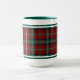 Uma caneca de café com tartan para Clan Boyd. Padrão de xadrez escocês vermelho e verde de 1956 com sotaques azuis, pretos, ouros amarelos e brancos.