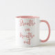 Respire Em Respire A Cota Motivacional Mug. Design minimalista com uma citação motivacional em um roteiro cor-de-rosa-claro.