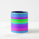 Uma caneca brilhante criativa. Caneta colorida de listras horizontais multicolores brilhantes. Design de cor de caneca striped artsy brilhante. O original artístico listrava canecas. Caneca listrada única vibrante.