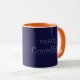 Um Anjo Marrom, Guardian Angel Mug que apresenta um anjo marrom/latino com asas laranja em um fundo azul rezando por sua proteção, cura e orientação na vida. A palavra guardião está escrita atrás com espaço para personalizar o seu nome ou o nome dos seus entes queridos. A cor do interior e da alça também é cor de laranja que corresponde às asas. Os anjos trazem conforto e esperança. Use como um amuleto da sorte.