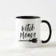 Dia de as Bruxas engraçado de caneca de café com a frase "Witch Please" num roteiro lúdico, com letra manuscrita, com uma vassoura de bruxa por baixo. Esta caneca de Halloween é perfeita para tomar café, chá ou cacau quente enquanto adiciona um pouco de humor sazonal ao seu dia. Faz um presente de excelente para amigos, colegas de trabalho ou qualquer um que ama um bom trocadilho — divertido de usar para o Halloween ou o ano todo.