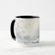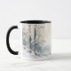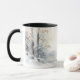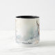 Esta caneca tem uma bonito aquarela em volta da cena de um veado majestoso em pé em uma floresta de inverno. Os flocos de neve caem gentilmente ao seu redor. Seu nome ou outro texto está em azul-cinza na parte inferior central. Bonito para a época de Natal e todo o inverno, também.
