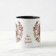 Uma bonito coroa de outono em tons de cinamão marrom, bronzeado e creme rodeia a imagem aquosa de um adorável bufo colorido americano Cocker Spaniel. A imagem é impressa duas vezes na caneca, com seu texto personalizado entre eles.