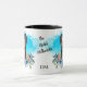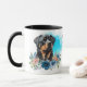 A característica nesta caneca é uma bela imagem aquosa de um rottweiler preto e bronzeado emergindo de um buquê de rosas azuis e pêssego. A imagem é colocada sobre um fundo azul brilhante de plástico e impressa duas vezes na caneca. Entre as duas imagens está seu texto personalizado e seu monograma ou nome em preto. Faça-o dizer o que quiser, ou até remova o texto completamente, se quiser.