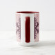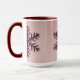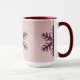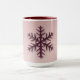 Este é um floco de neve bonito e burgundy numa caneca combo. A caneca combo tem um interior marrom e uma alça marrom. O design do floco de neve foi feito com arte generativa. A arte apresenta um floco de neve burguês sobre fundo rosa. O floco de neve tem seis pontos. O fundo é uma matiz rosa suave com contraste com o floco de neve burgundy. A caneca é uma caneca de 15 gramas.