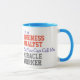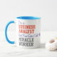 Mensagem divertida em uma caneca para um analista de negócios. Diz: "Pode me chamar de Milagre Trabalhador".