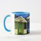 Caneca Cabanas de praia e céus azuis, foto em inglês