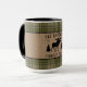 Uma bela e rústica caneca de café com duas tonalidades, com o nome da família e a cabana, a cabana, a cabana, a cabana ou outro texto desejado e a sua data estabelecida. Este design exclusivo e personalizado apresenta uma silhueta de um alce e pinheiros em um impressão, no estilo burlap, acentuado com bela xadrez francesa em tons suaves de grama e verde-sábio. Para ver mais designs como esta, sinta-se à vontade para visitar a minha loja aqui em "Zazzle.com/Rustic_Charm". Obrigados.