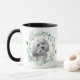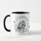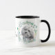 Cada lado desta caneca tem um belo retrato aquoso de um adorável Cachorro branco Havanês numa coroa azul verde. Entre as duas imagens está o texto que diz "AME MEU HAVANÊS" a preto. O texto pode ser facilmente alterado ou mesmo removido, se preferir.