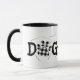 Texto "Mãe de Cachorro" com pegadas pretas e brancas de padrão de xadrez de búfalo e cabelo preto de cão. O fundo branco pode ser alterado.