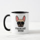 Trate-se ou alguém que você conhece que é um buldogue francês, mãe de uma gata de café da mãe. Apresentando um rosto de buldogue francês de cor clara em um estilo cartoon moderno, esta caneca de café é um excelente presente para as novas e já carinhosamente orgulhosas Mães frenchidas.