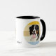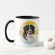 Um retrato de um lindo Cachorro de Montanha Bernês é a característica nesta caneca. A imagem é colocada sobre um fundo solar retrorreflector listrado e listrado. A imagem é impressa duas vezes na caneca, com seu nome, monograma ou outro texto personalizado entre eles.