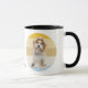 Um retrato de um Cachorro Shih Tzu, marrom e branco adorável, é a característica desta caneca. A imagem é colocada sobre um fundo solar retrorreflector, ligeiramente angustiado, bronzeado e faixa azul, e impressa duas vezes na caneca. Seu nome está em um script preto entre as imagens.