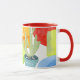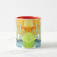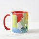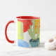 Caneca de cacto colorida. Diversão, abstrato minimalista e divertida design. Perfeito para alguém com gostos modernos e modernos. Faz um presente excelente também! Espelhos de laranja, verde, azul e amarelo atrás de um cacto cercado.