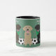 Ilustração fofa de cães Labrador Retriever jogando futebol. Perfeito para amantes de cães ou estrelas do futebol!