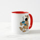 Eu desenhei um bebendo de cachorro pateta comicado com uma xícara de café. Parece que está pronto para conversar. Este cartão é vazio de dentro para a sua mensagem manuscrita.