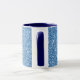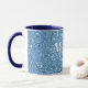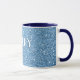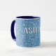 Caneca de café azul com nome personalizado. Esta caneca de café elegante é decorada com um fundo de brilho simulado cintilante. É personalizada com um nome personalizado impresso em uma impressão branca arrumada com um contorno azul escuro fino. Personalize com seu próprio nome ou transforme em um presente personalizado encantador.