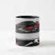 Esta caneca de café é mostrada com uma impressão de fotografia-arte de um carro esportivo. Personalize este item ou comprar como está. Imagem do stock vecteezy.com