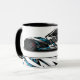 Esta caneca de café é mostrada com uma impressão de fotografia-arte de um carro esportivo. Personalize este item ou comprar como está. Imagem do stock vecteezy.com