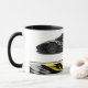 Esta caneca de café é mostrada com uma impressão de fotografia-arte de um carro esportivo. Personalize este item ou comprar como está. Imagem do stock vecteezy.com