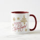 Desejo clássico de "Feliz Natal", flocos de neve da época de inverno e motivo de árvore de Natal abstrato.