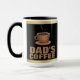 Passe um degrau com a minha caneca do "PAI'S COFFEE". Esta versão adiciona um toque de classe com fundo preto e fundo dourado. O texto em negrito pode ser personalizado e você pode alterar a cor do plano de fundo. A design está em ambos os lados da caneca.