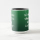 Engraçado Verde, preto e branco, cor da faculdade, a caneca de café diz "fale comigo quando esta caneca estiver vazia".