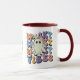 Esta é uma engraçada "Spooky Western Ghost Coffee Mug" Diz "Spooky Vibes" no estilo Groovy. Este Coffee Mug apresenta um nome personalizável na parte frontal e traseira. Clique no botão Personalizar para adicionar seu nome.