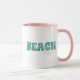 Volte no tempo com esta caneca de café cerâmico de 1970. Adorada com tons pastéis de azul-aqua, rosa e amarelo, esta caneca certamente ajudará você a abraçar a vida na praia. A caneca apresenta texto colorido de ‘Praia’, intricadamente projetado com imagens de palmeiras bonitinhas, flores de hibisco, conchas, guarda-chuva de praia e cadeira de praia. Acrescentar um toque de elegância é a palavra "vida" no texto bonito, cor-de-rosa, aninhado confortavelmente por baixo da palavra "praia". Exuindo uma vibração feminina, esta caneca é a adição perfeita a uma casa de praia tropical ou a um aluguel de cama e café da manhã. É também um presente ideal para qualquer um que ama a praia ou os trópicos. Quer você esteja bebendo seu café matinal ou se desfazendo com uma xícara de chá quente, esta caneca o transportará para um paraíso de praia.