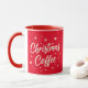 Escrito elegante caneca de café de Natal. A design apresenta o texto "Café de Natal" em tipografia branca com estrelas brancas e elementos de destaque em espiral. Faz o melhor presente personalizado para você, seus amigos, familiares e até mesmo vizinhos. Temos mais de 35 canecas de café de Natal na nossa coleção que vocês definitivamente vão amar. Por favor, dê uma olhada e ganhe o melhor presente de Natal com desejos especiais para suas pessoas especiais. Feliz Natal!