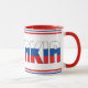 Mug de café Patriótico da Bandeira Nacional da Eslovênia com a inscrição deliciosa "Eslovênia", que está infundida com o padrão e as cores da bandeira nacional. O design termina com as duas linhas duplas finas em complemento das cores no topo e no fundo do copo. A dentro de cor do copo e da alça do copo está perfeitamente equilibrada com o resto das cores. Aqui está o companheiro fantástico para a xícara de café diária. Design charmoso, cores adoráveis e o aspecto único fazem dele um presente perfeito para qualquer ocasião. © 2021 PaísesDoMundo