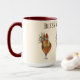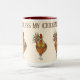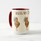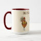 Esta caneca de café de duas tonalidades é agarrada por algumas bonito galinhas coloridas para ajudá-lo a acordar com o seu peito matinal favorito. Três frangos junto com texto lendo Bless My Chickens com marrom vermelho interior e manípulo. Múltipla coloração sobre fundo de marfim na caneca branca. Personalizar este item ou comprar conforme projetado. imagem de estoque freepik.com