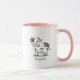 Uma caneca engraçada com uma pega rosa e uma vaca em forma de desenho animado. Esta design é adequada se você está procurando um presente para um fazendeiro ou uma garota que ama animais Kawaii! Personalize-o com o nome do seu amigo.