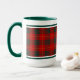 Mata de café com tartã para Clan Cameron e suas sebes, incluindo Chambers e Taylor. Padrão de xadrez escocesa vermelho-claro e verde-florestal de 1842, com sotaques amarelos.
