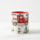 Um design de inverno bonito e clássico com um caminhão vermelho, árvores, neve e um Snowman! Esta caneca está disponível em várias cores!