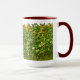 UM CAMPO DE GIRASSÓIS ADORNA ESTA CANECA DE CAFÉ.