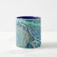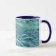 Célula azul no espumante mar pintando pintura de uma grande concha azul-solteiro verde-concha no mar espumante.