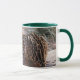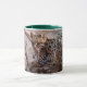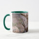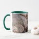 Uma caneca de bebida mostrando um belo coágulo pontilhado (leopardus pardalis) olhando para você com cuidado enquanto se deita em um membro da árvore. O texto pode ser personalizado: alterar o texto, alterar as fontes, alterar o tamanho, alterar as cores, reposicioná-lo ou removê-lo completamente.