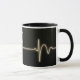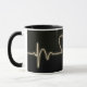 Uma caneca de café eletrocardiograma elegante com fundo preto. Conheça ou dê como presente para o seu médico.