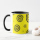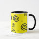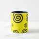 Esta caneca de 11-oz foi projetada para fazer seu chá, café ou chocolate quente um tempo feliz. Ele tem um fundo amarelo e um padrão de espiral preto, e a alça e o interior combinam com as espirais. Esta caneca é o presente perfeito para fazer alguém feliz em sua vida.