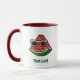 Bela caricatura. Uma fatia de melancia com óculos de sol. Texto personalizado de ambos os lados.