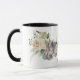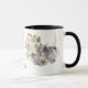 Por trás deste belo retrato de aquarela de um cão Miniatura Schnauzer nesta caneca está um bonito buquê de rosa branco. A imagem do buquê e do cão tem uma espiral sobreposta de faux glitter confetti. A imagem é impressa em dois lados, com seu texto personalizado em preto no centro, na parte inferior, entre as imagens. Perfeito para quem perdeu o coração para um mini Schnauzer. *Observe que a imagem é impressa e não contém brilho real.