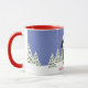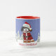 Festivo Xmas Red Combo Coffee Mug - Feriado de Natal personalizado Bernedoodle vestindo o efeito rabisco de rabisco e o Pai Natal segurando canas doces na boca. Inverno de neve. Uma linda caneca de natal para amantes de berneodle!