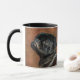 Retrato de Black Pug Dog. Um lindo e belo retrato digital de pintura de óleo de cachorro preto. Vestir uma camisa listrada e dar um olhar de lado/olho de baleia, com um fundo castanho escuro e verde. Ricas cores neutras, em tons de terra, com um olhar rústico e aflitivo. Os insetos têm uma personalidade notável e encantadora, apesar do seu pequeno tamanho. Pronto para ser personalizado, basta adicionar seu nome.