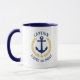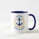 Um café personalizado com duas notas Mug com classificação Capitão ou outro título, seu nome de barco, nome de família ou outro texto desejado. Apresentando uma âncora náutica, folhas de ouro e emblema de estrela, desenhada por medida. Várias cores de sotaque a escolher para corresponder ao seu decor atual. Faz um presente excelente para qualquer ocasião.