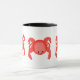 Uma caneca divertida para aqueles que amam caranguejos oceânicos. Desenho animado de três caranguejos vermelhos com pinças e olhos pretos da luz.