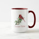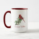 Uma bela impressão de Natal clássica. Design apresenta um Cardeal vermelho de aquarela no centro, sentado em um galho com folhas. As palavras "Desejos de Natal" encontram-se sob um guião vermelho escuro. A mensagem pode ser personalizada.