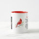A personalized memorial coffee mug that you can add a person's photo, name and dates of birth and death. On the back is a poem about cardinals coming to visit you when a lost loved one is near, letting you know they are never truly lost. This has some red accents on it to match the cardinal. These are a lovely keepsake to remember you loved one each morning as you sip your coffee or tea.