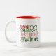 Caros Papais noeis Basta Trazer Vinho Manuscrito Moderno Café de Natal Mug apresenta o texto "Caros Papais noeis trazem vinho" na moderna tipografia vermelha e verde, acentuada com um arco e boneco de neve.